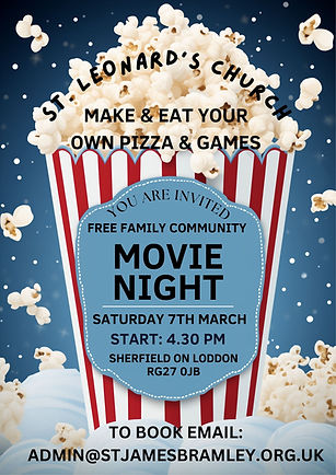 Come and enjoy our next Family Movie Night on the 7th March starts 4.30pm. Hosted at St Leonard's Church